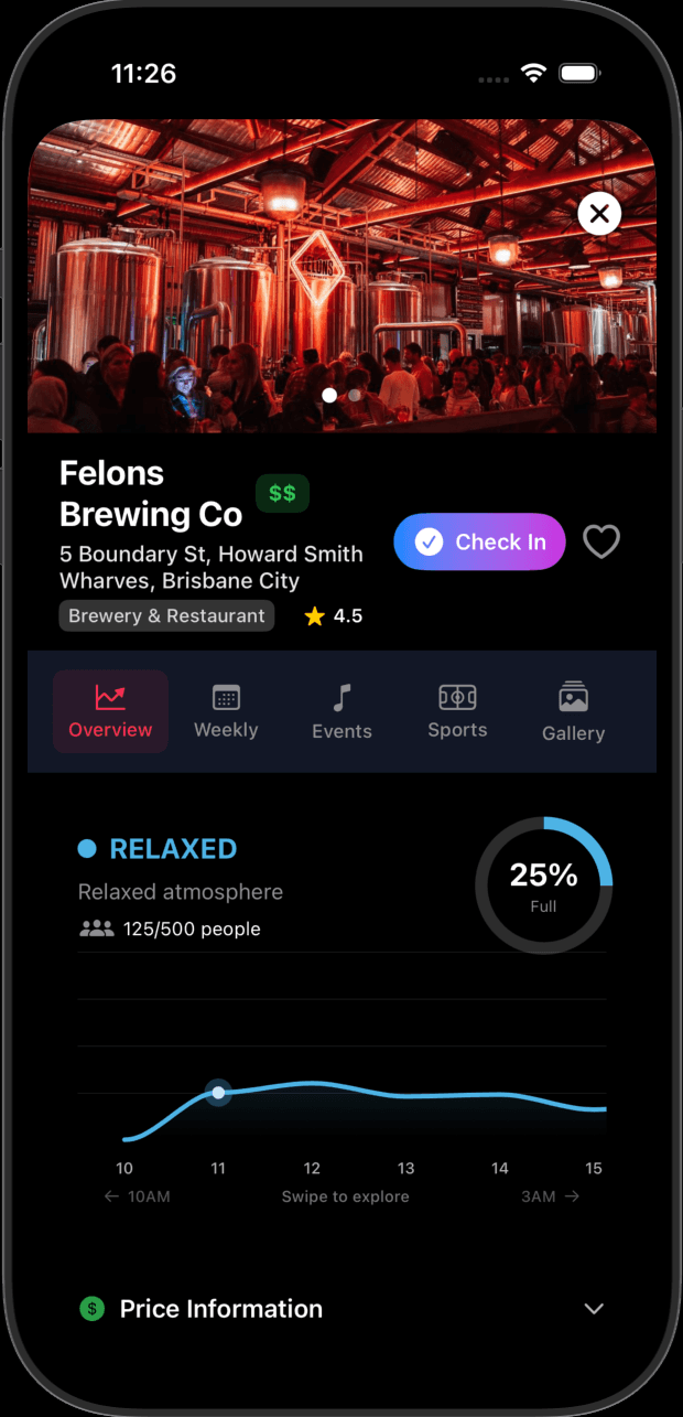 Vibe is a nightlife discovery app that shows you what’s happening around you — in real time. Whether you’re chasing a packed dance floor, a chill rooftop, or the best drink specials in town, Vibe helps you find the perfect spot before you head out. With live crowd insights, venue updates, and upcoming events all in one place, Vibe takes the guesswork out of your night so you can spend less time planning and more time vibing.